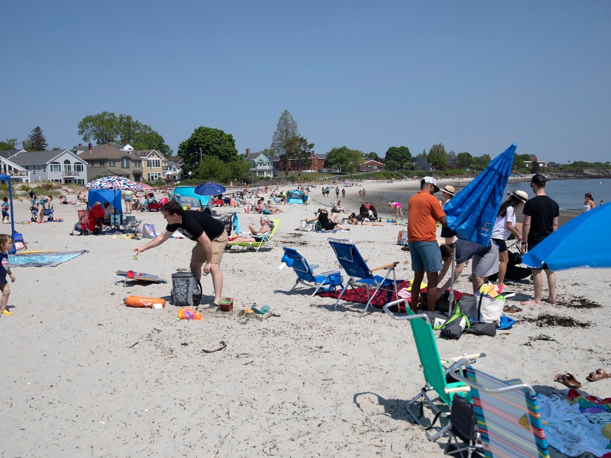 Willard Beach was closed to swimming for several hours Saturday, but the floating material was deemed to be from the seafloor and posed no threat.