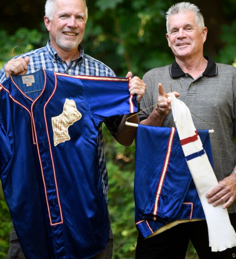 Artifacts include a satin and silk uniform worn by former Cony standout Dick Rand in a 1947 high school all-star baseball game in Boston.