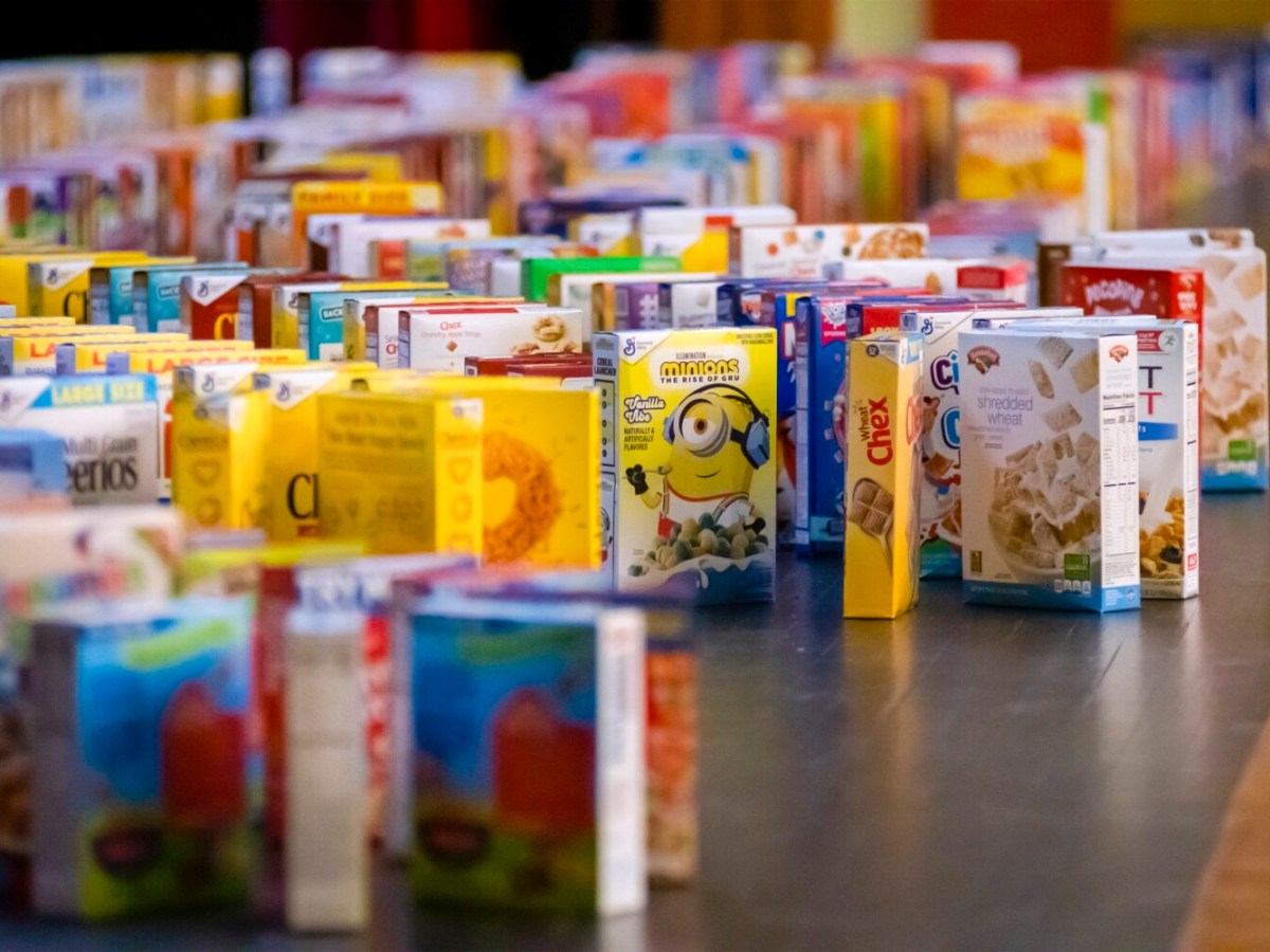 Students and community members collect the cereal boxes for the Augusta Food Bank. The food will save the food bank about $5,000.