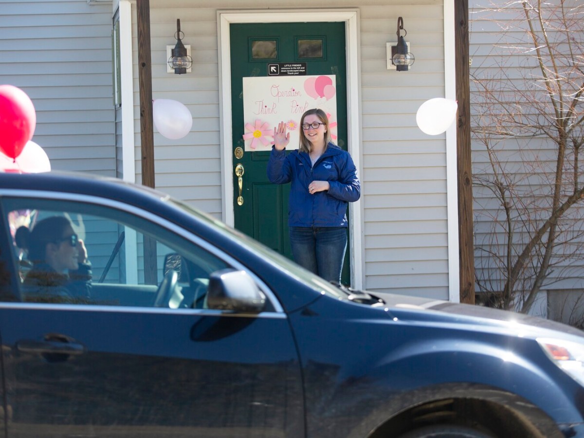 Nearly 30 families stage a celebration – from a safe distance – for Kaytee Gibbon, who’s preparing to adopt a baby this spring.
