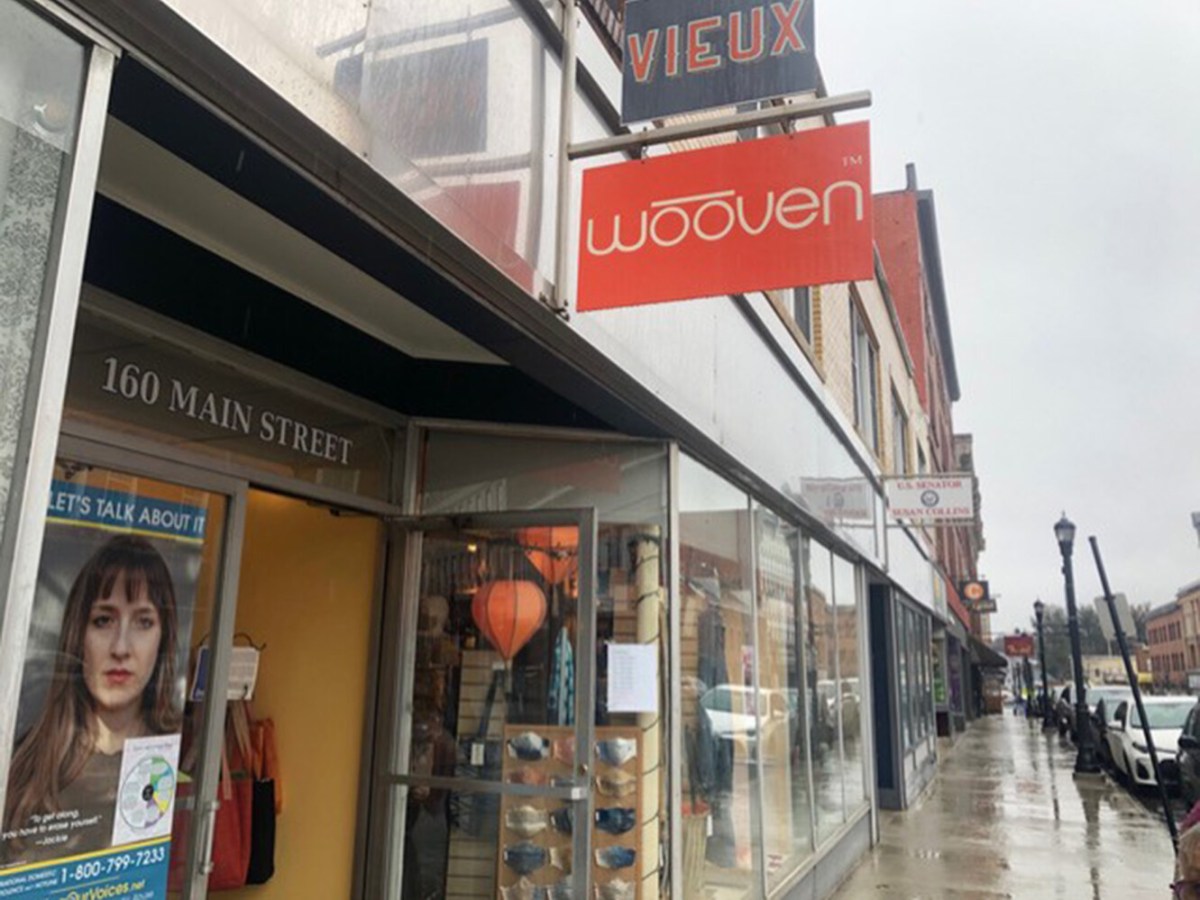 Faces of those who suffered domestic abuse hang in Biddeford window fronts