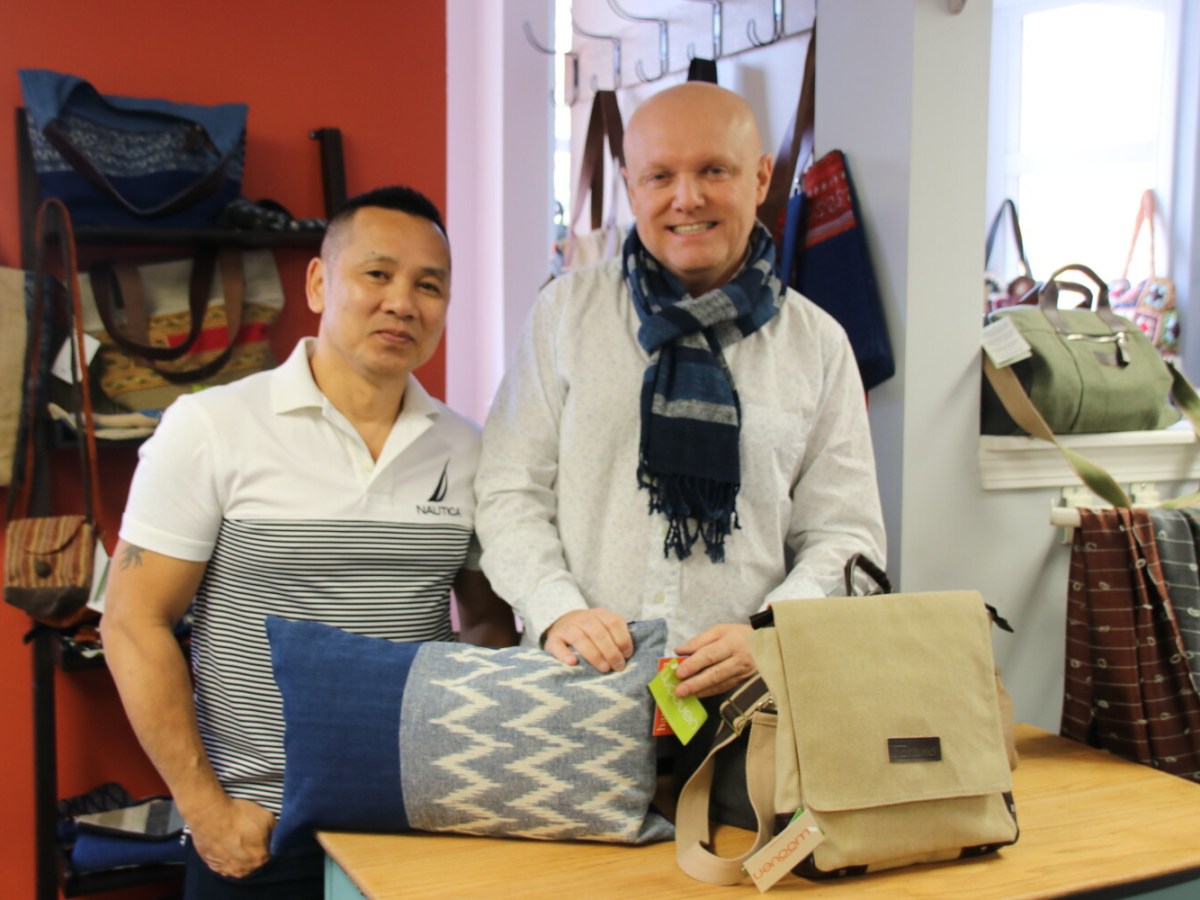 Locally designed fabric is handwoven in southeast Asia and returned as scarves, bags, more.