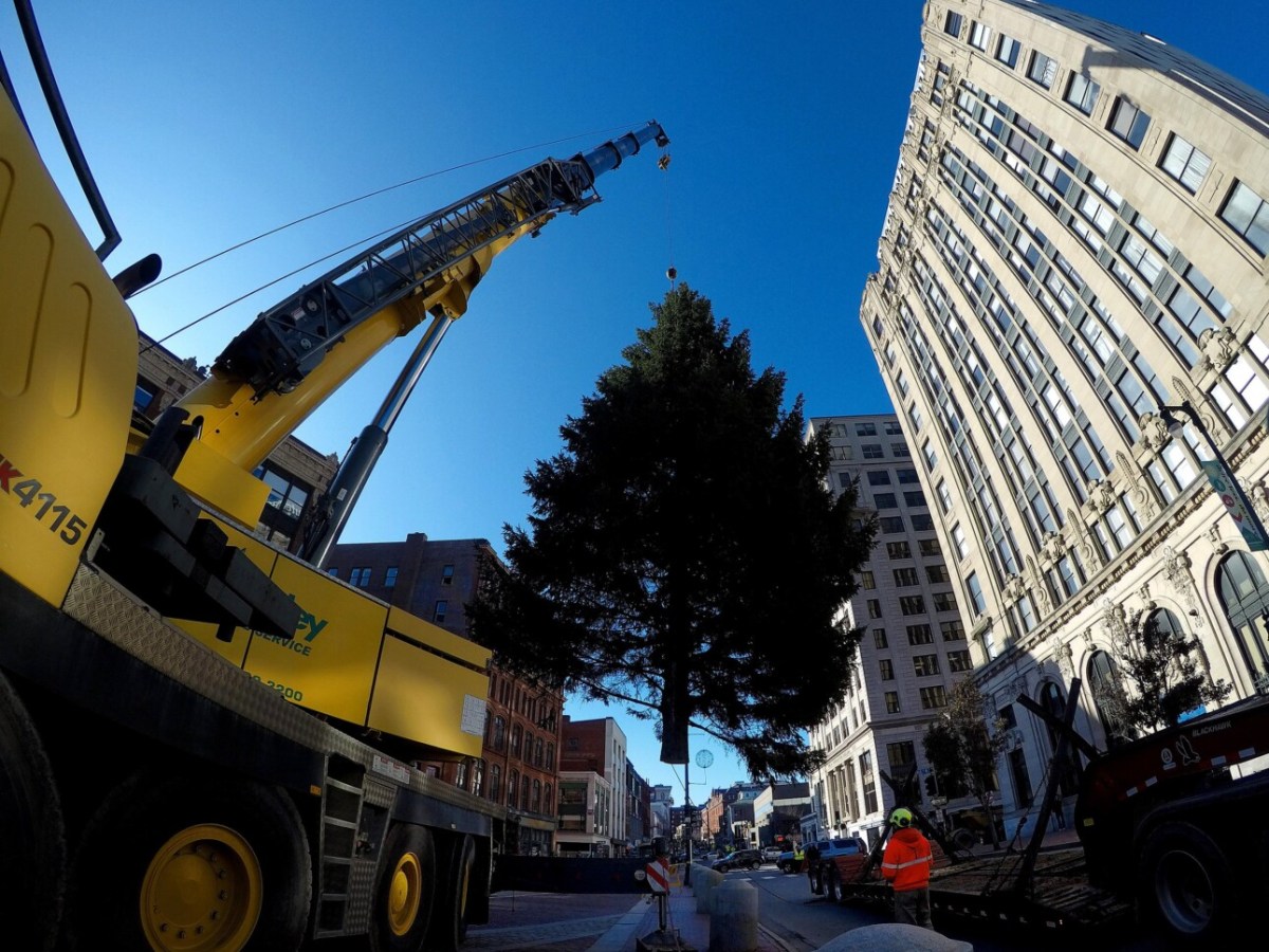 See time-lapse video: Portland’s holiday tree arrives in Monument Square
