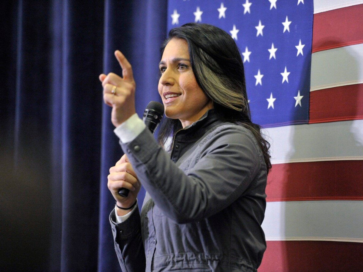 The long-shot Democratic presidential candidate, who is a military veteran and Hawaii congresswoman, makes her pitch to about 150 people at the University of Southern Maine.