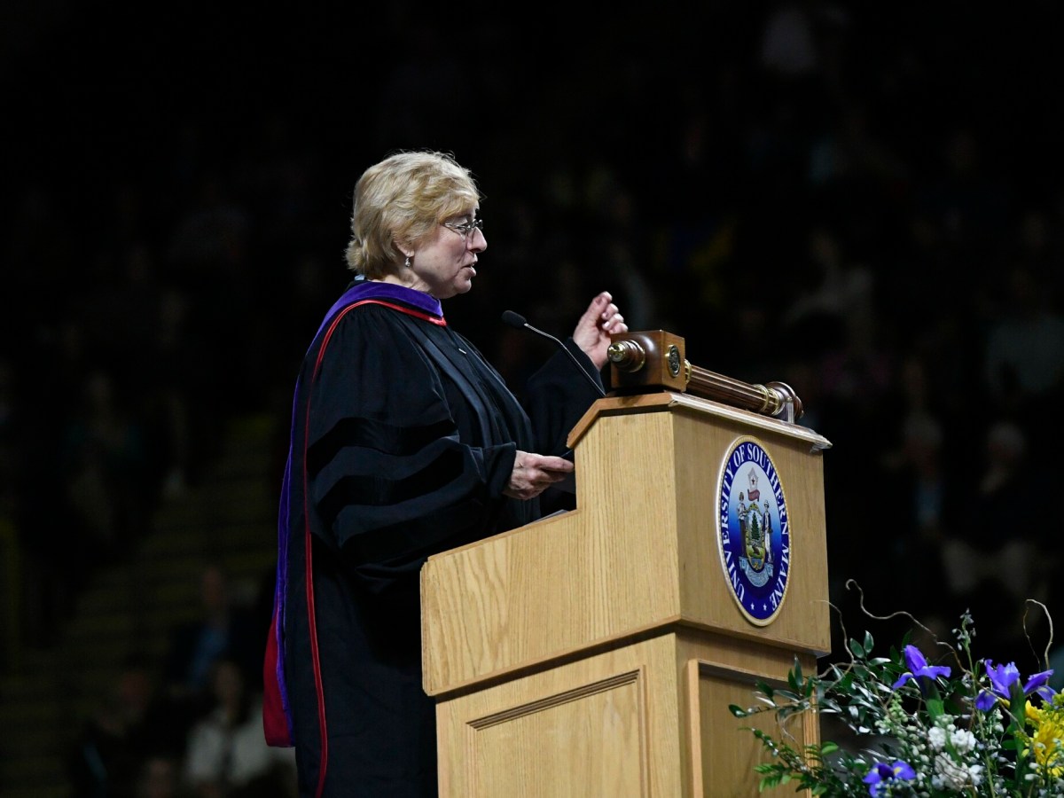 She delivers the keynote address to more than 900 University of Southern Maine graduates on a day that saw commencement ceremonies at colleges across the state.
