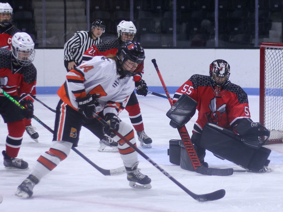 Leksi Langevin records a hat trick for the Red Hornets while Paige Fecteau pitched a shutout in goal