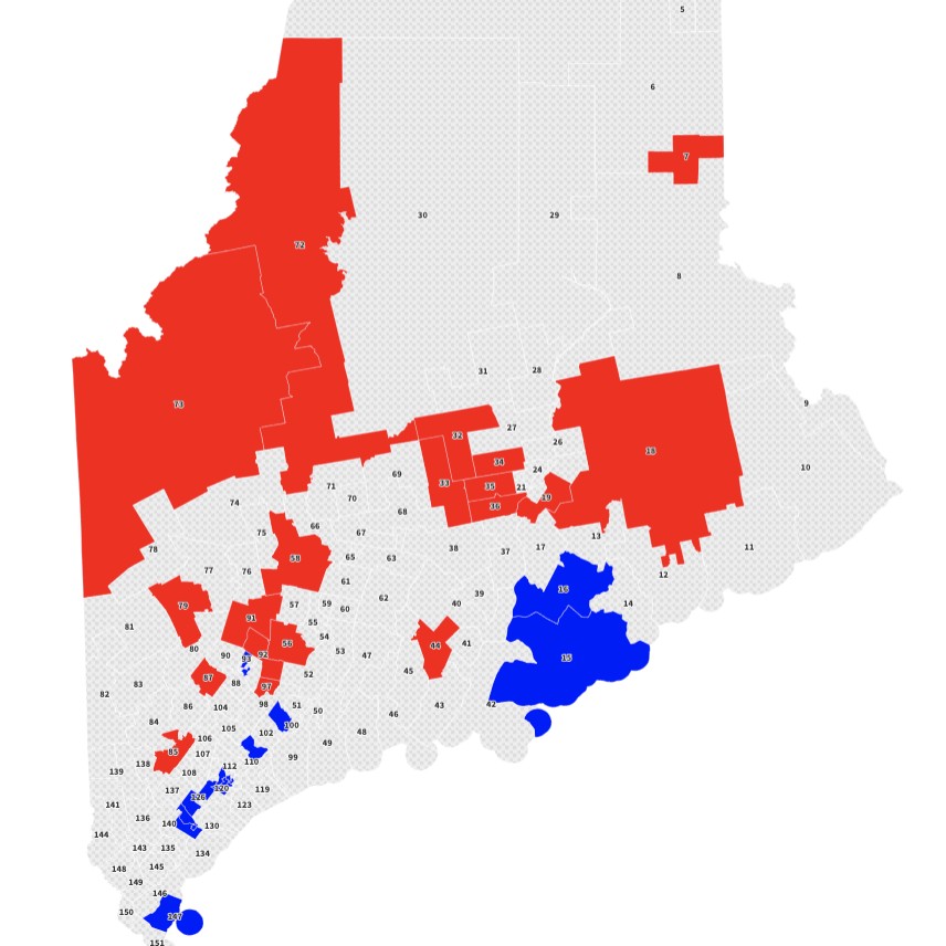Quarter of Maine House races have only one major-party candidate. Here’s a map of those districts.