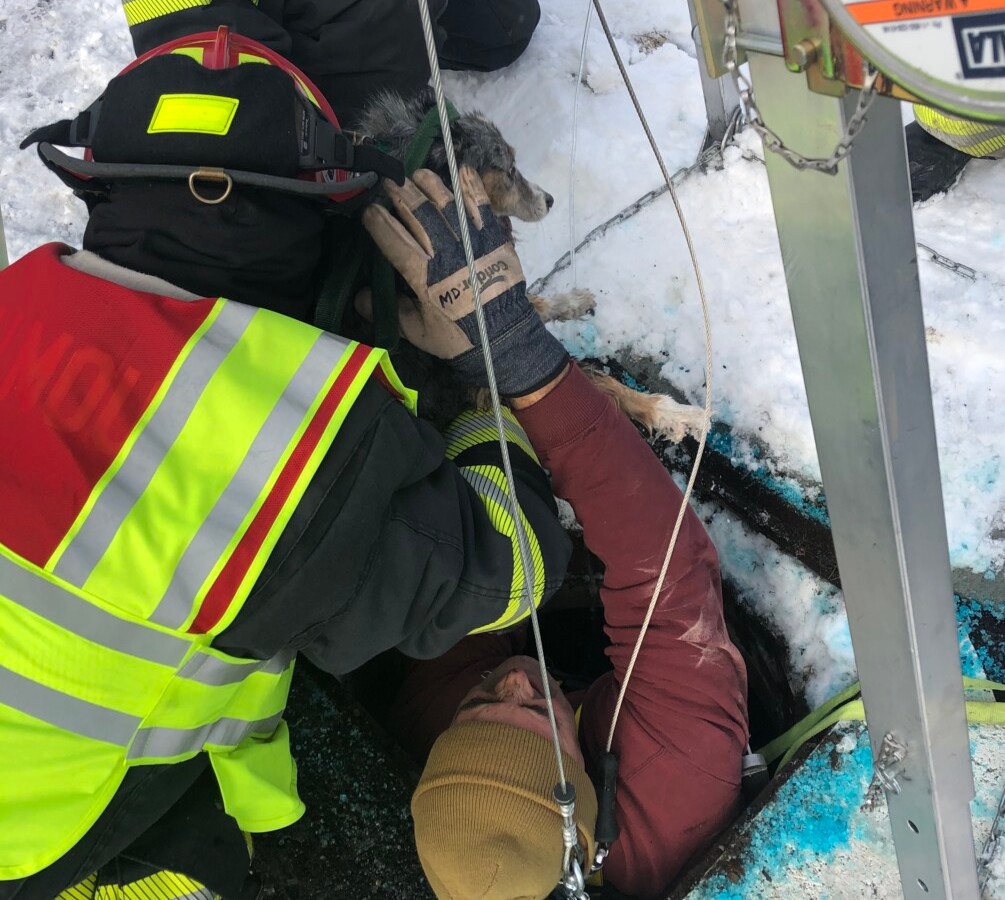 Falmouth firefighters make unusual rescue – a dog trapped in storm drain