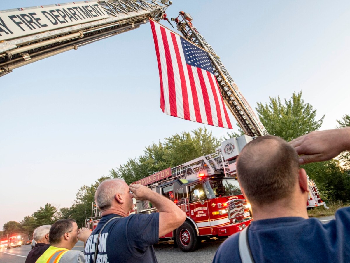 Capt. Timothy ‘TD’ Hardy is welcomed home with a procession of emergency vehicles.