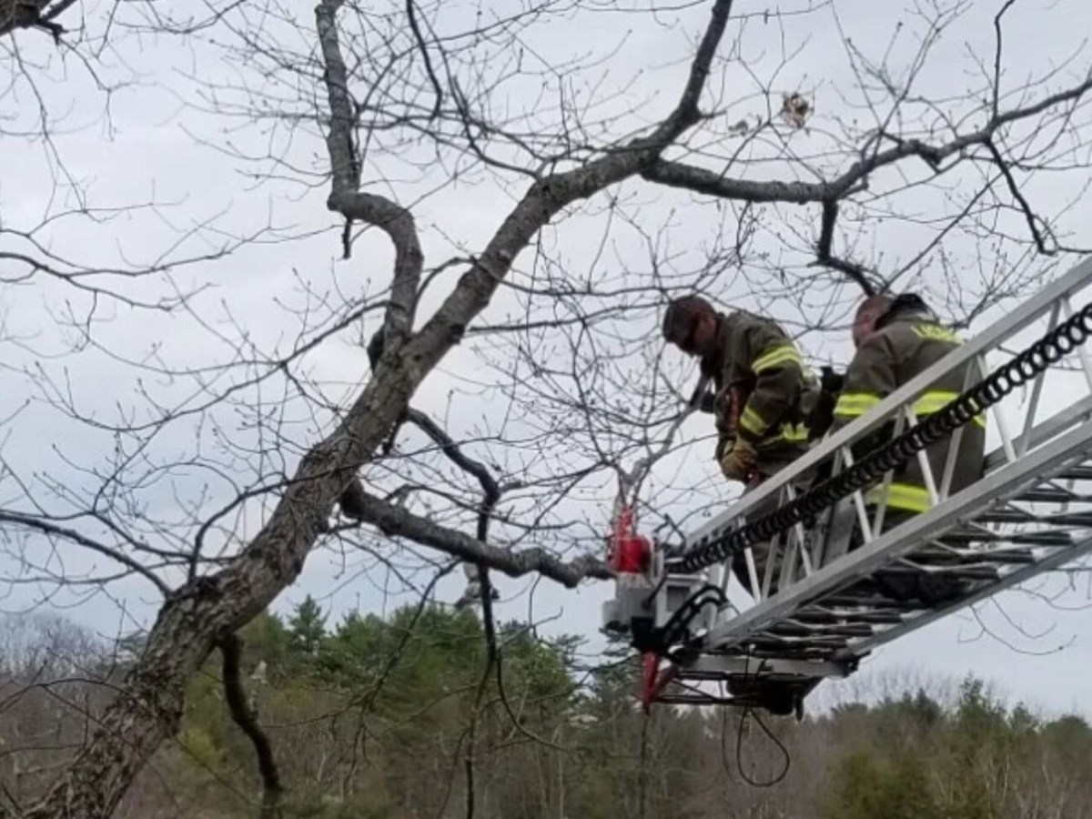 The woodpecker had become entangled in fishing line in a tree by the Sabattus River.