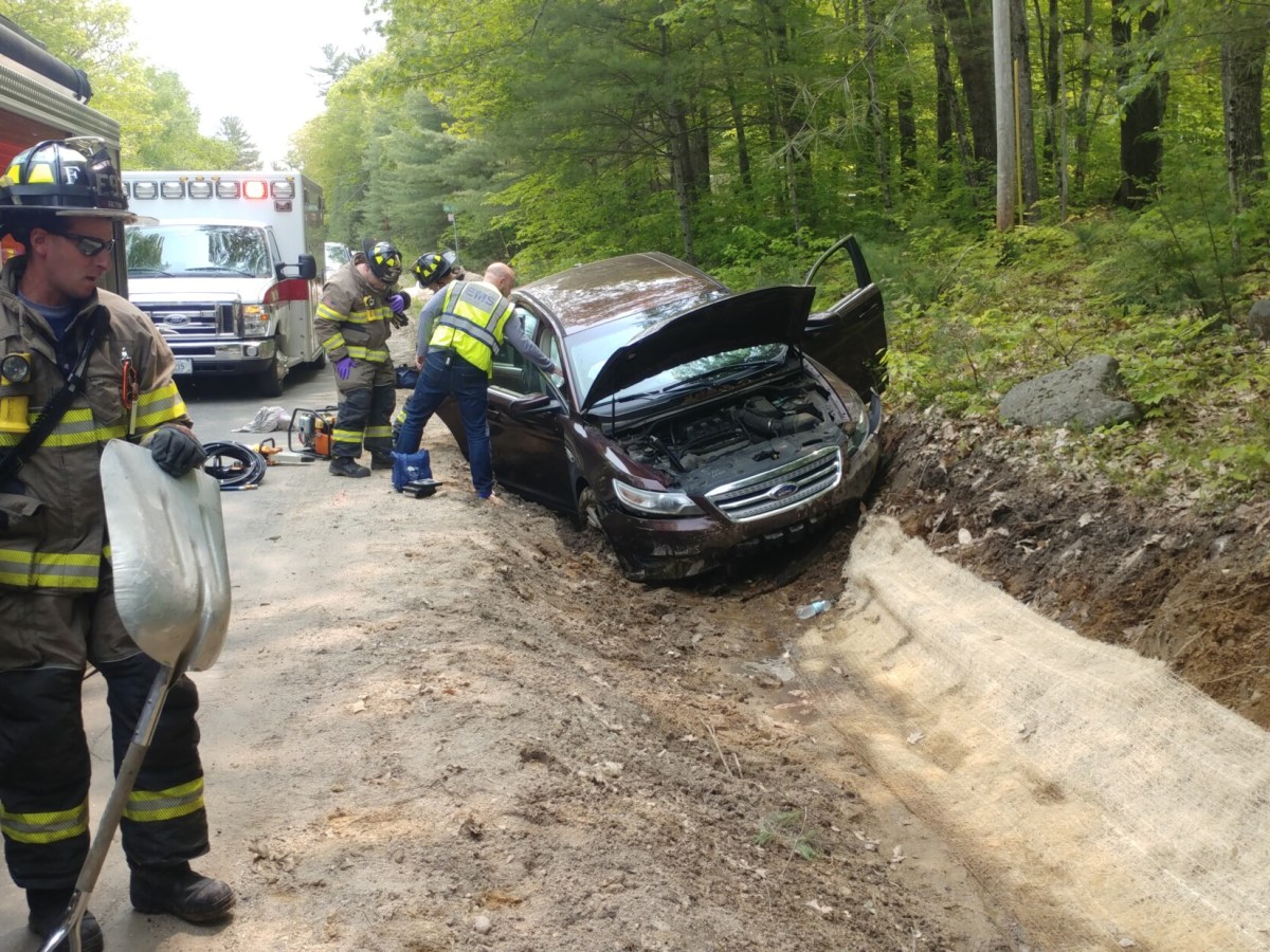 Jonah Weese and a passenger were hospitalized after driving into a ditch to avoid the slow-moving tractor in Fryeburg.
