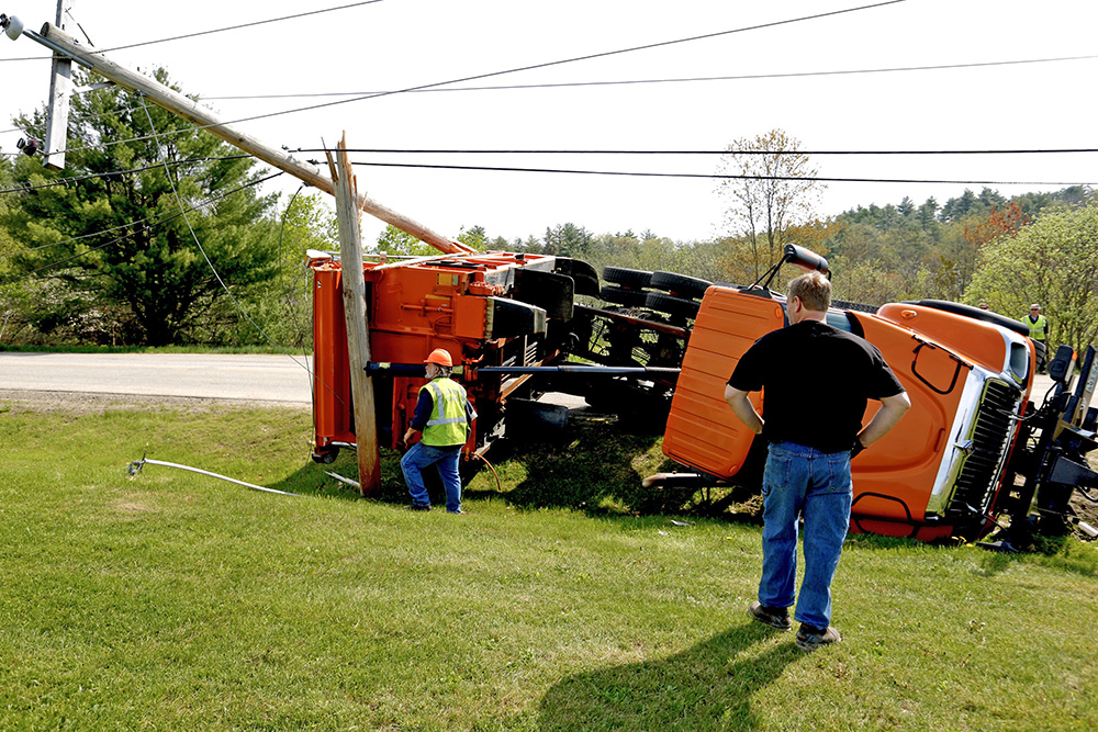 Raised dump truck bed hits Gorham utility lines, disrupts electricity
