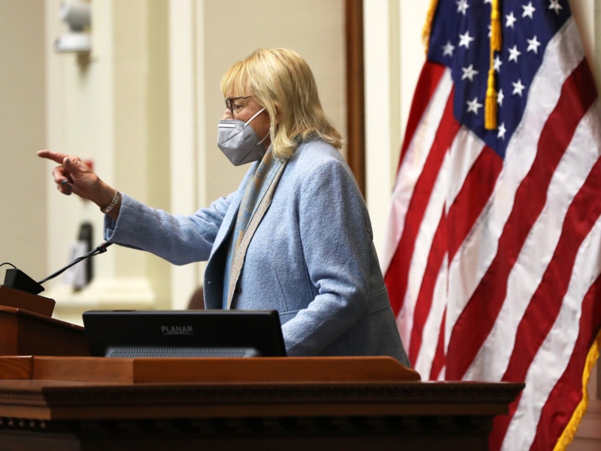 In her State of the State address Thursday, the governor touted progress the state has made in fighting the pandemic while sounding caution about the uncertainties that lie ahead.