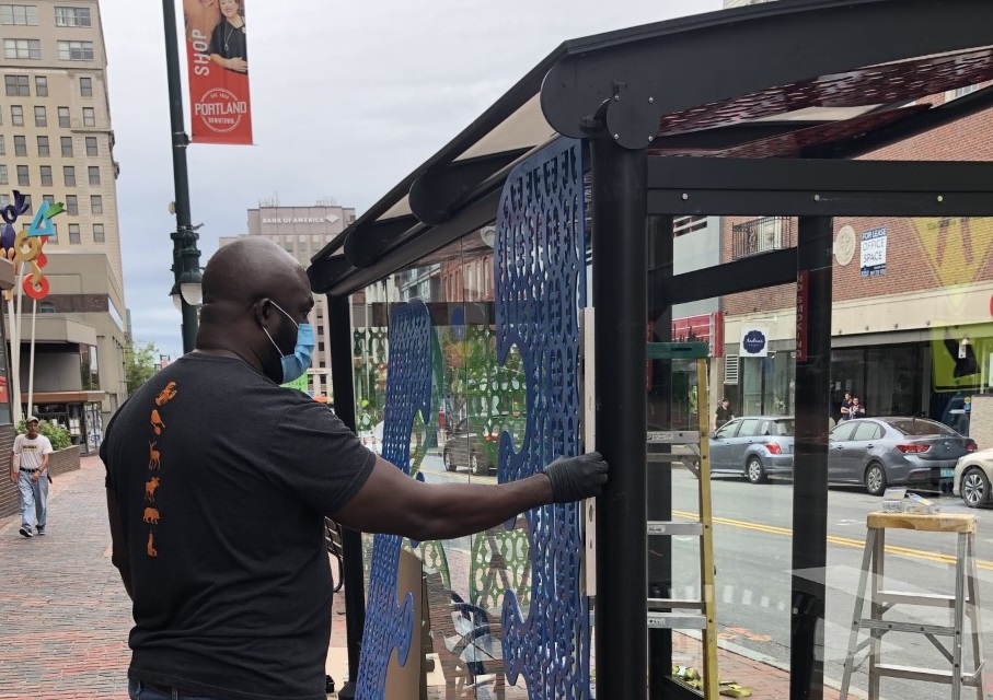 Federal art funding has allowed the works of Maine artists to adorn Portland bus shelters on Bedford, Congress and St. John streets.