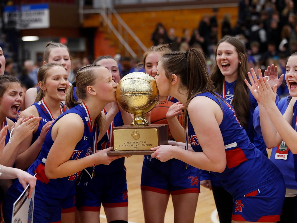 Julianna Allen scores 17 points to help the Eagles beat Hampden Academy in the Class A final.