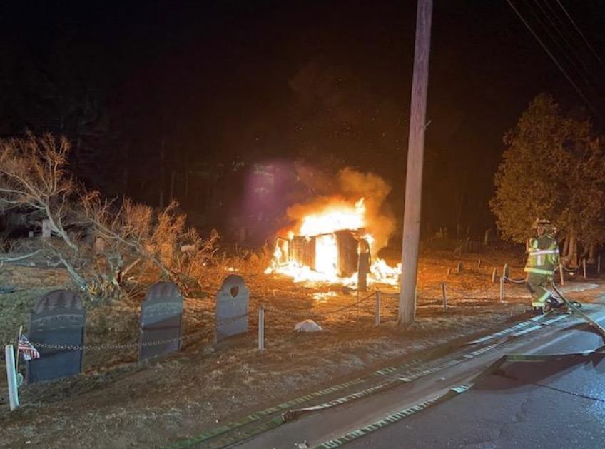 Police: Car bursts into flames after crashing into Harpswell cemetery