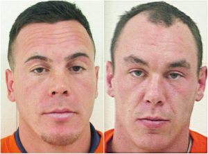William Deary and his son, Hayden, allegedly painted swastikas and a racial slur on speed limit signs in Cook’s Corner, according to Brunswick police.