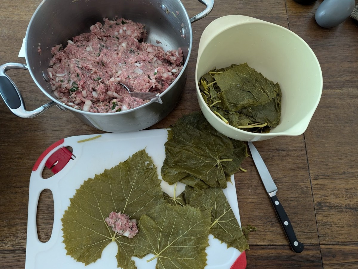 Old Orchard Beach resident Joann Sueltenfuss picks and preps the grape leaves. Then she stuffs them with a lemony meat-rice mixture, just as her grandmothers taught her.