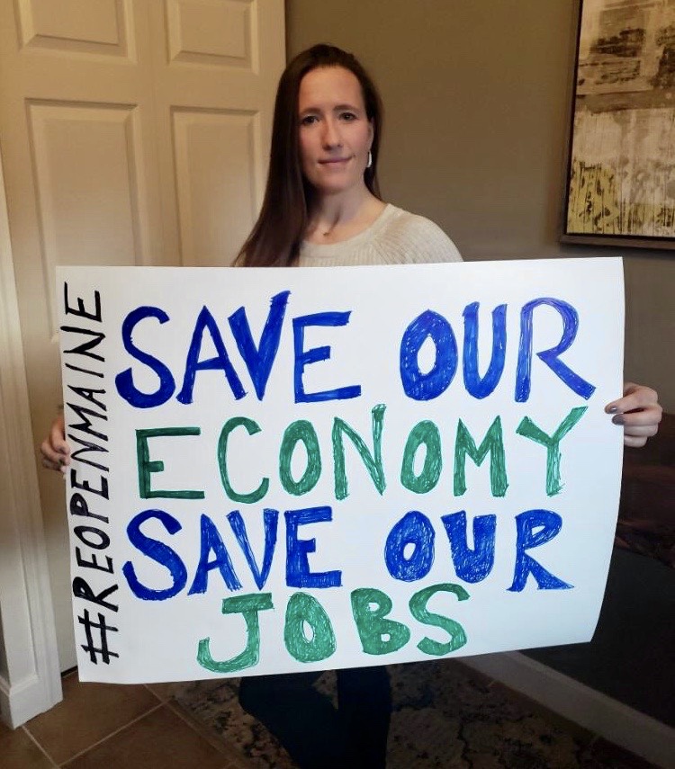Bangor’s Adrienne Bennett held a virtual protest rather than risk attending a rally in Augusta calling for the state to reopen, a position she endorsed.