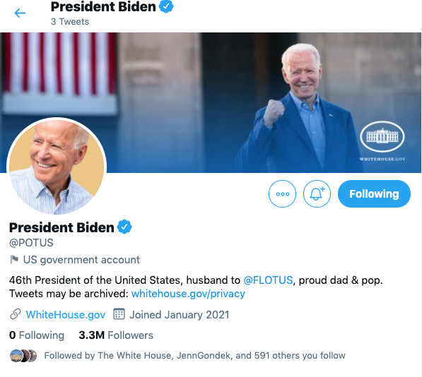 Biden takes over POTUS Twitter account, inheriting blank slate from Trump