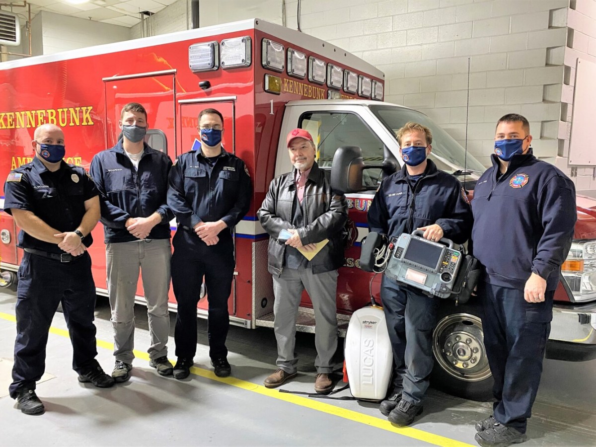 George Ford thanks his lifesavers at Kennebunk Fire Rescue