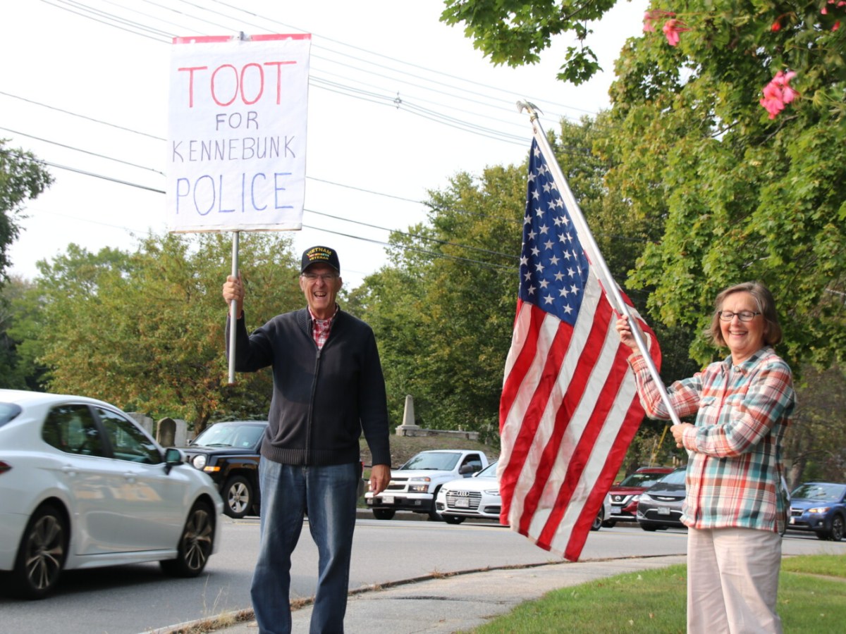 David and Patty Ferris urge motorists to sound their horns, to let police know they’re appreciated.
