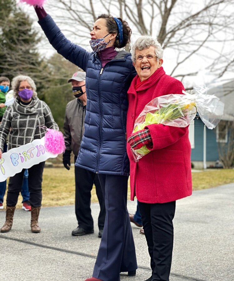 Lou Doucette was surprised and thrilled to see all who showed up on her special day.