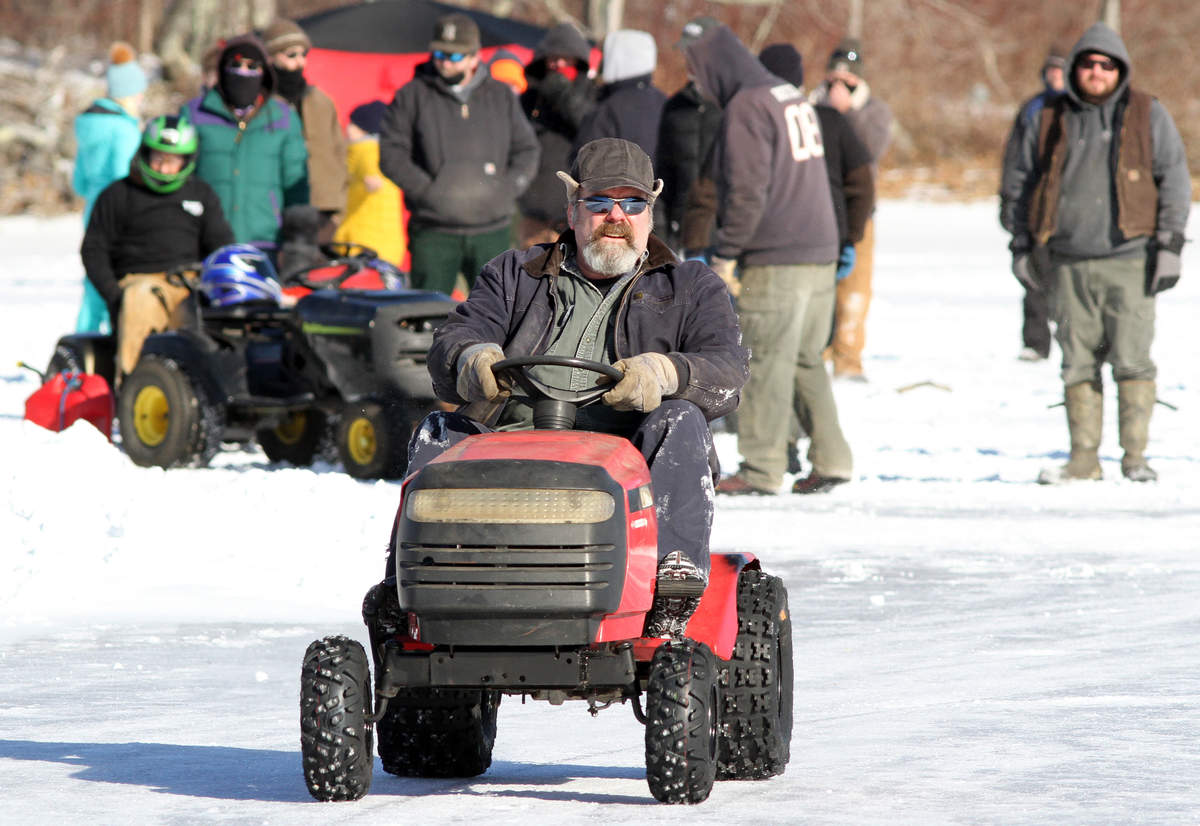 Frozen fun: Lawn mowers cut it up on Norton Pond in Lincolnville
