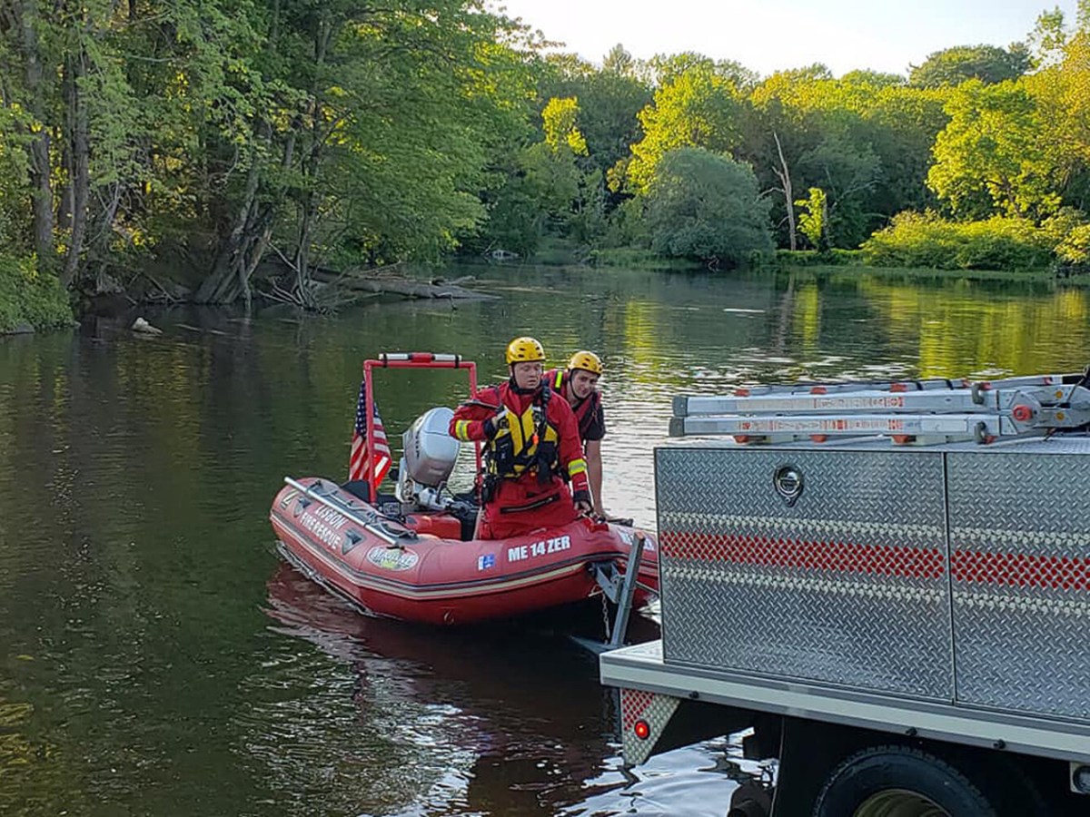 Conner O’Reilly of Topsham was rescued by the Lisbon Fire Department on Tuesday evening.