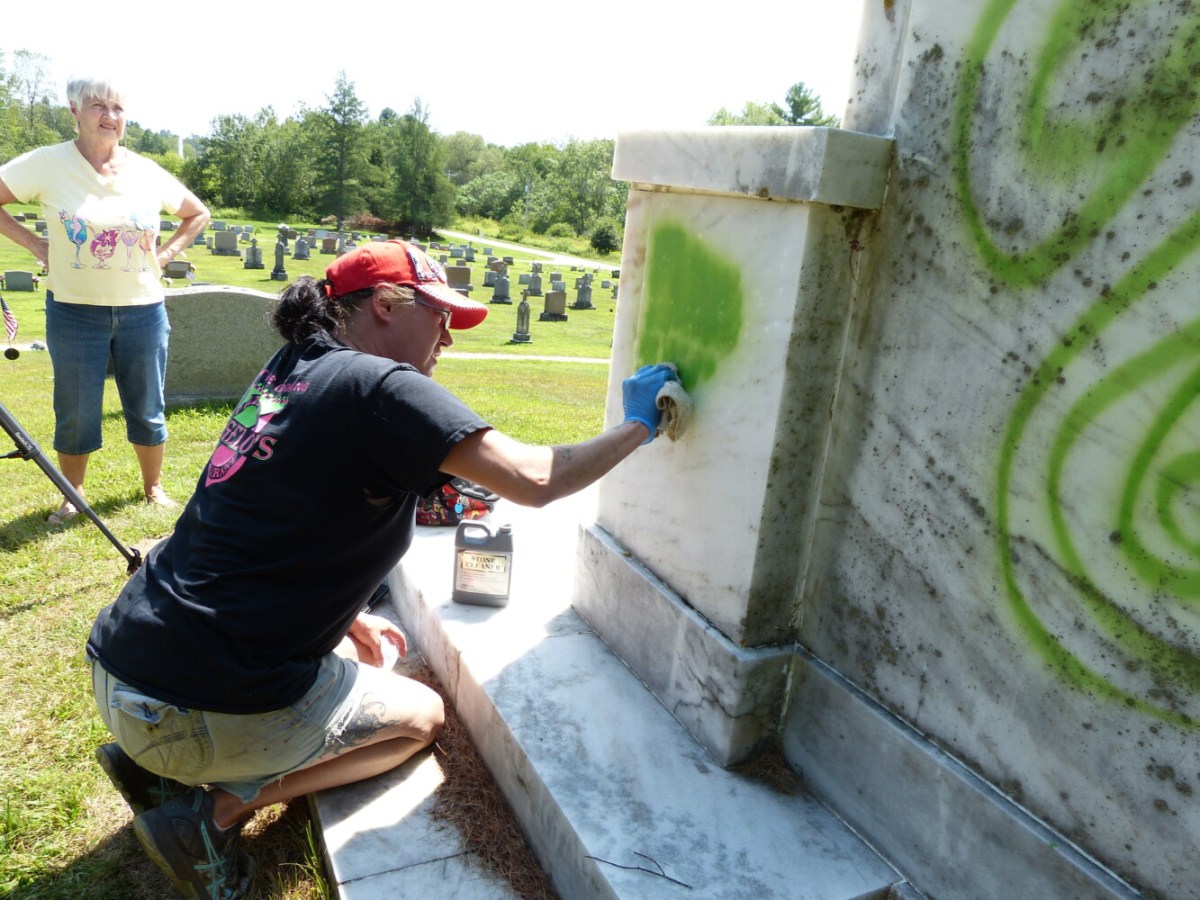 Six stones at St. Anne’s Cemetery in Lisbon were spray painted over the weekend.