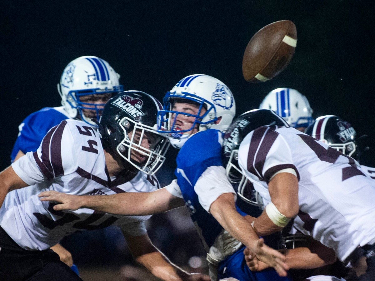 Falcons score on all seven first-half possessions in 63-12 win over Bulldogs.