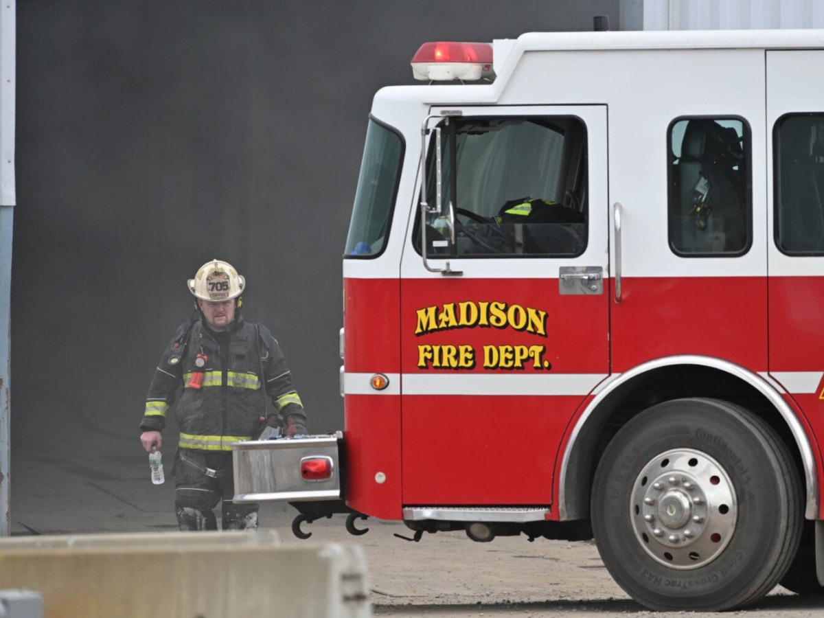 Firefighters fight blaze with fire extinguishers at former paper mill in Madison