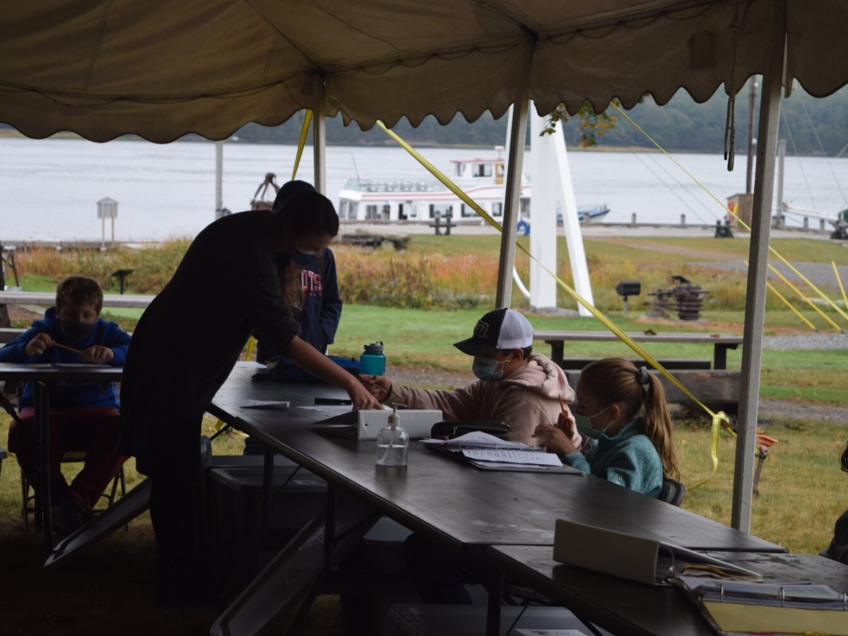 While some elements like backpacks, binders and a whiteboard, are familiar, the 15 students enrolled in the Maine Maritime Museum’s alternative learning program are outside whenever possible and studying elements of maritime history and culture alongside their core curriculum.