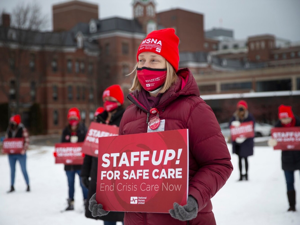 The protest, part of a national ‘day of action’ organized by the parent union of the Maine State Nurses Association, comes as the association negotiates its first contract with Maine Medical Center.