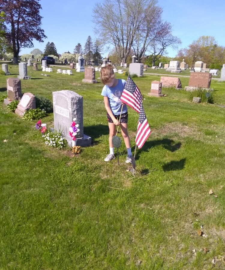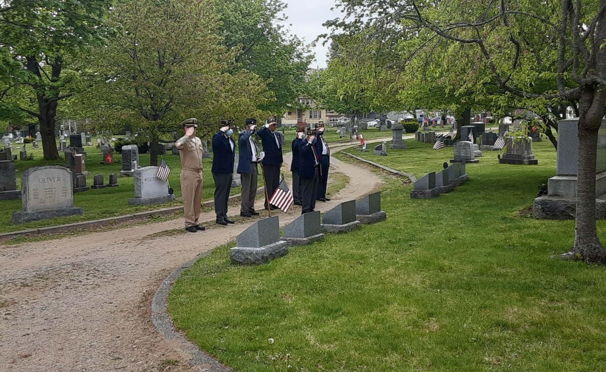 American Legion Harold T. Andrews Post No. 17 honors veterans with graveside flags at Evergreen Cemetery in Portland.
