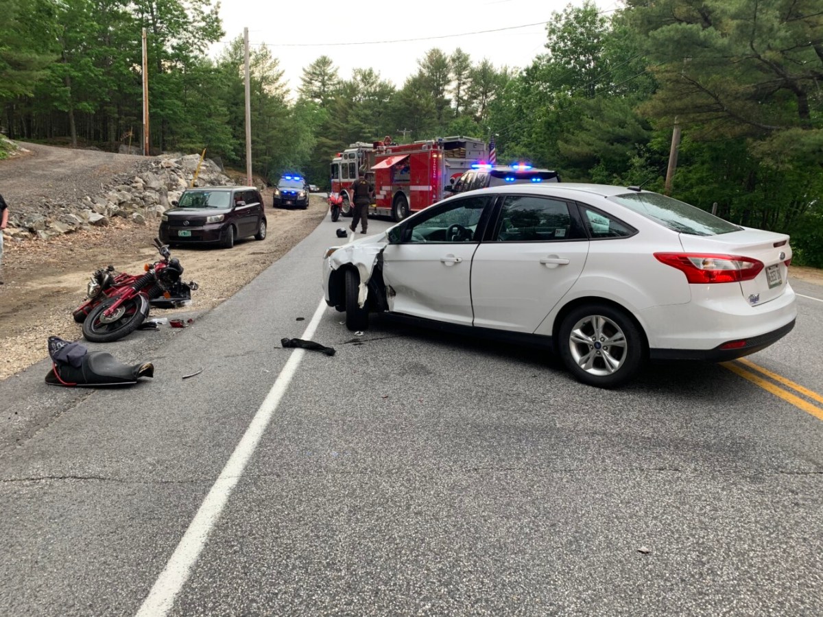Ralph Belmont, 65, of Poland was taken to Maine Medical Center in Portland after the BMW he was riding struck a car on Route 113.