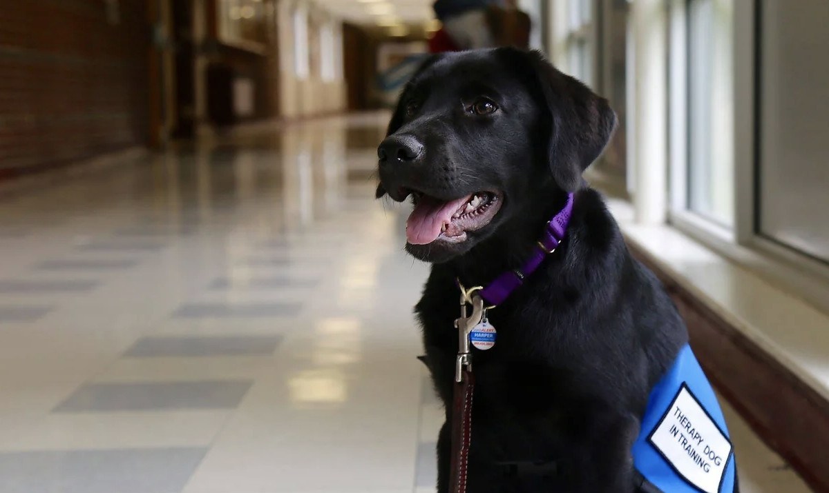The therapy dog is part of Greely High School’s neuroscience-based animal-assisted education program, now in its 23rd year.