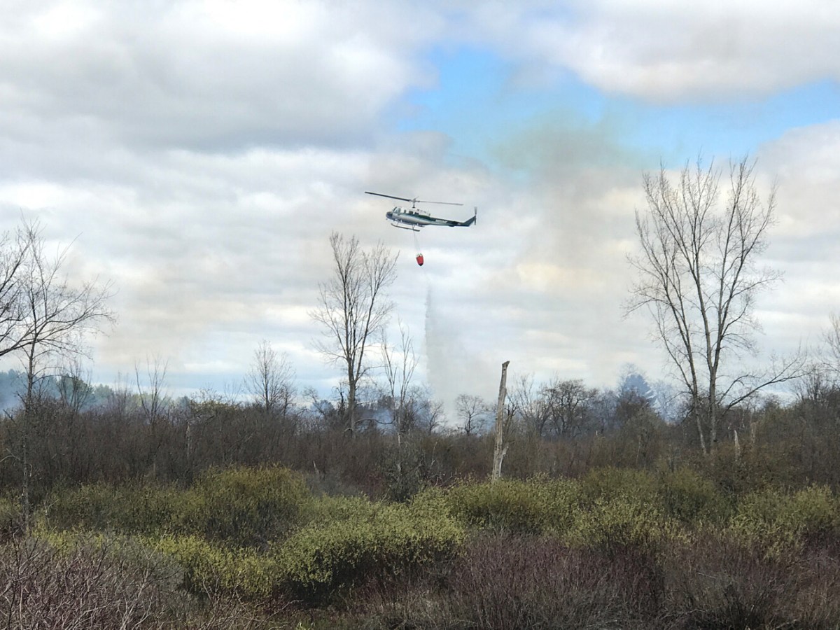 The fire took about 4 hours to control after high winds carried it across the Royal River, where it scorched about 10 acres of a nature preserve off Intervale Road.