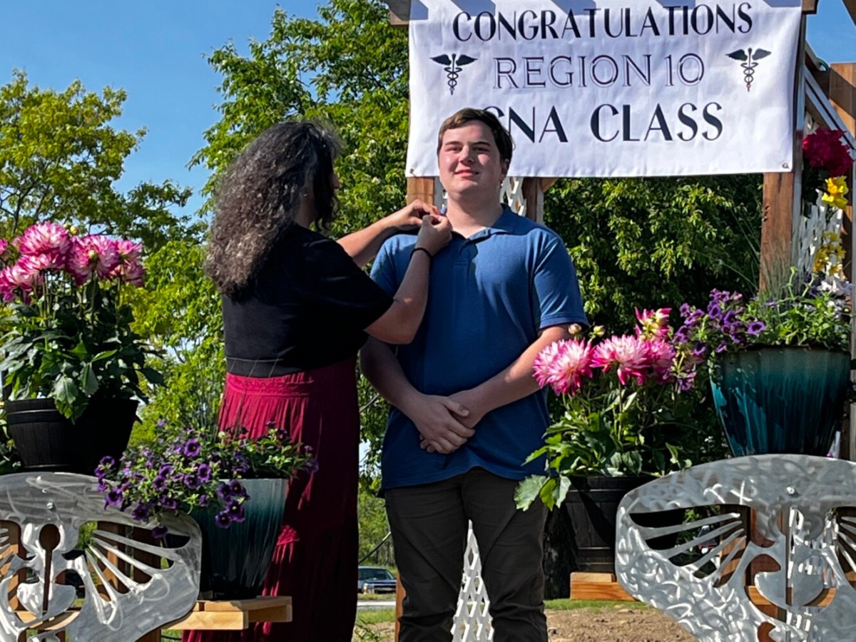 Nineteen students from the Brunswick-based technical high school celebrated passing the Maine State Certified Nursing Assistant Exam with a pinning ceremony Tuesday.
