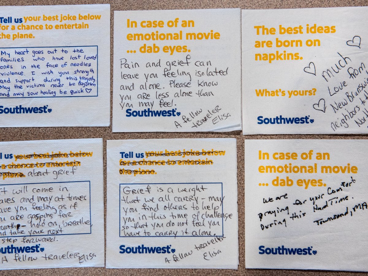 While in the air, Southwest Airlines passengers wrote messages to those affected by the 2023 mass shooting.