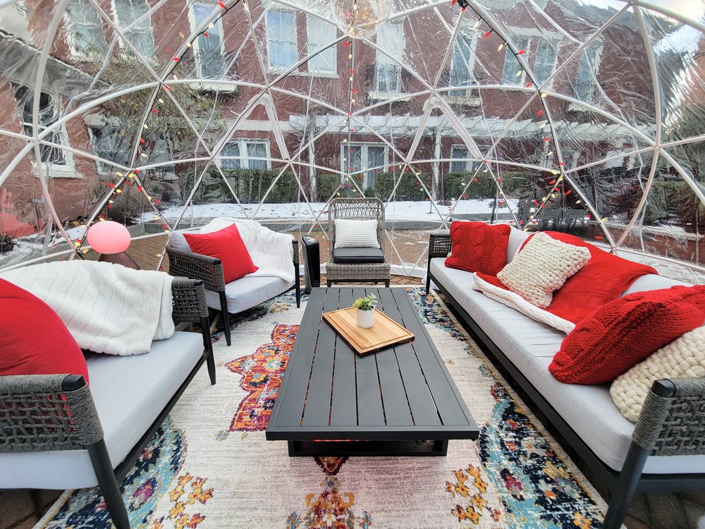 From heated igloos to cozy fires, establishments serve up plenty of outdoor options.