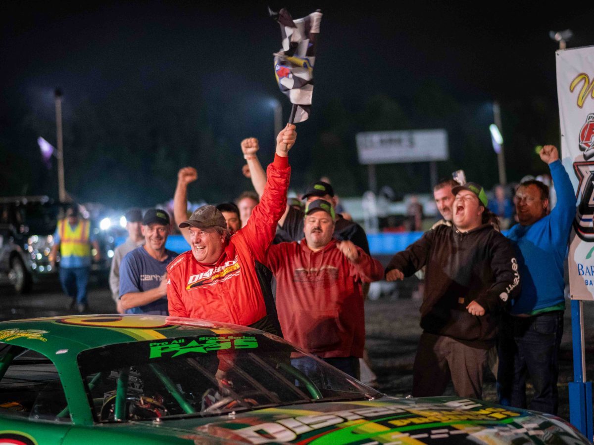 The Farmington driver, one of the best to race at Oxford Plains Speedway, chases down DJ Shaw then holds off 2018 champ Bubba Pollard.