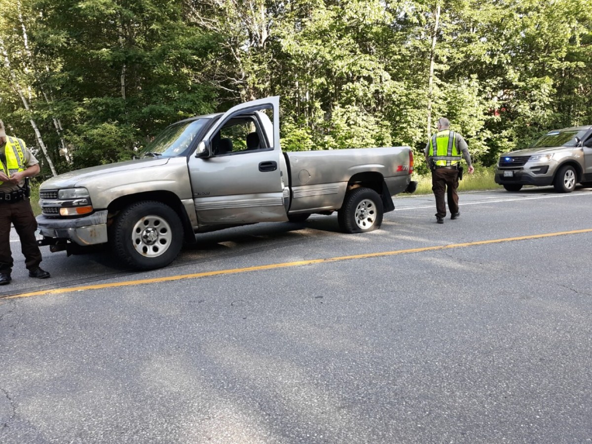 The driver avoided at least three spike mats, struck multiple vehicles, drove through a yard and crashed through a fence before Maine State Police stopped the stolen truck in Rumford.