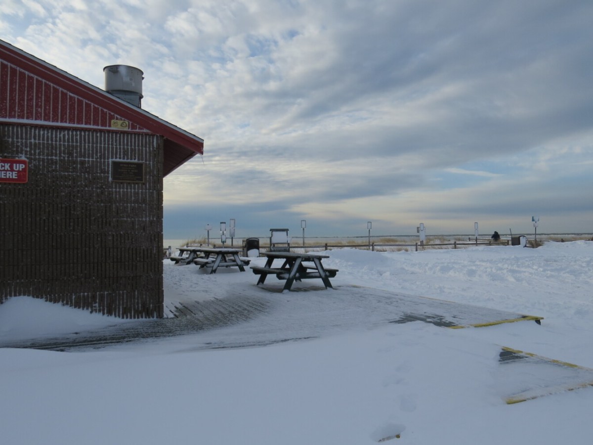 The proposal updates the bathhouse, re-configures the parking lot and adds a small picnicking area near the dunes.