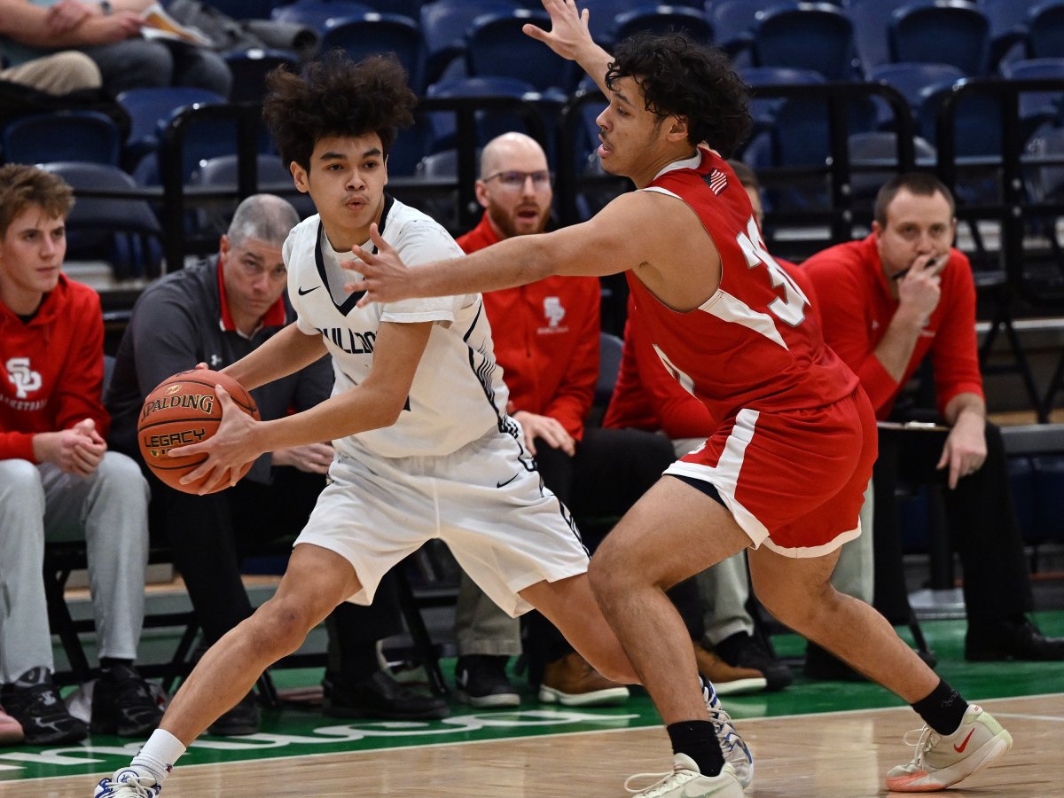 Reigning champion Stags ride a 26-1 second quarter run to a 76-34 victory.