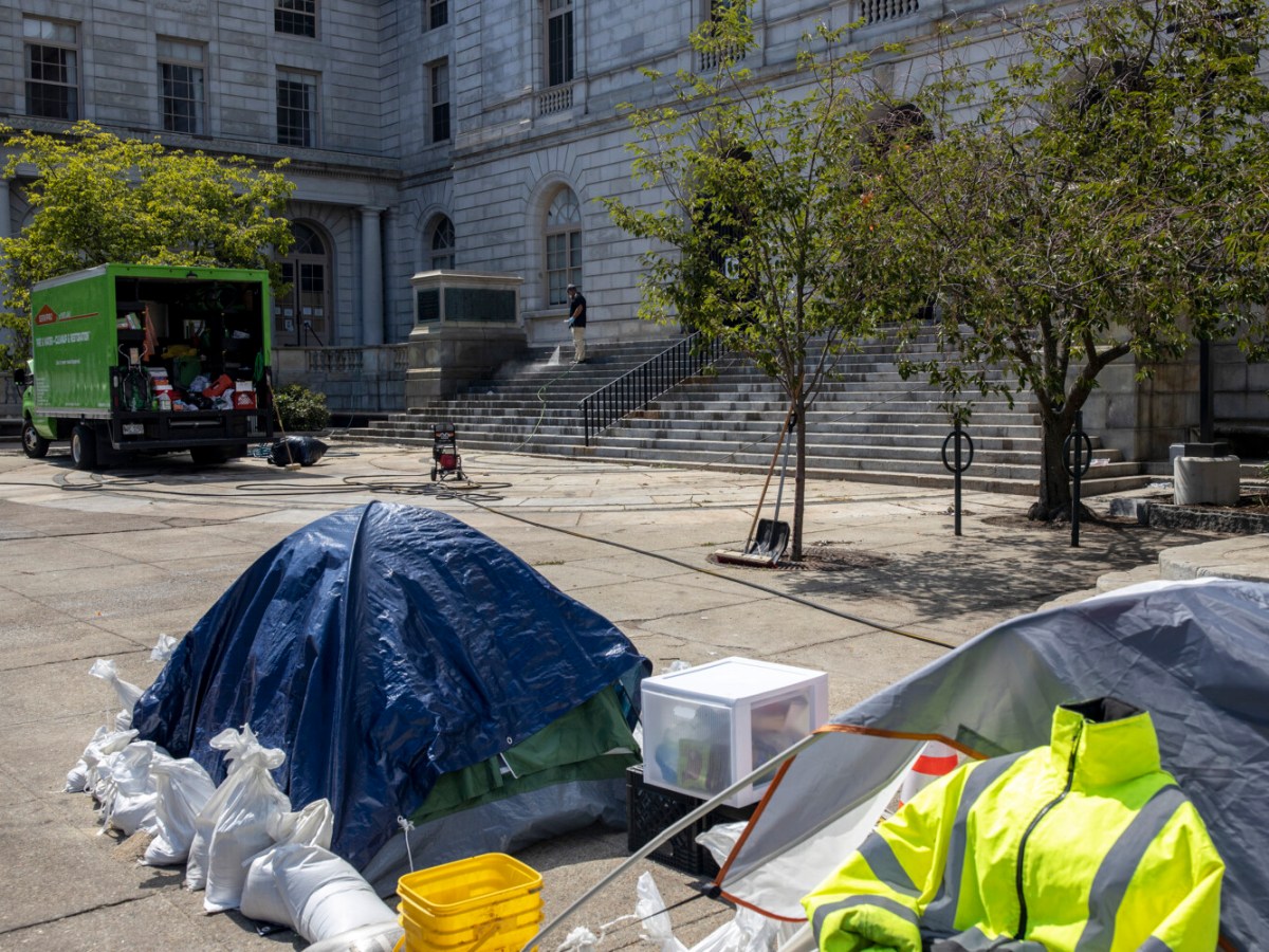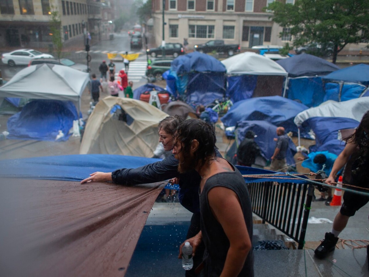 The remnants of a hurricane highlight the need to address the encampment at City Hall, which has grown since a few people first pitched tents last month.