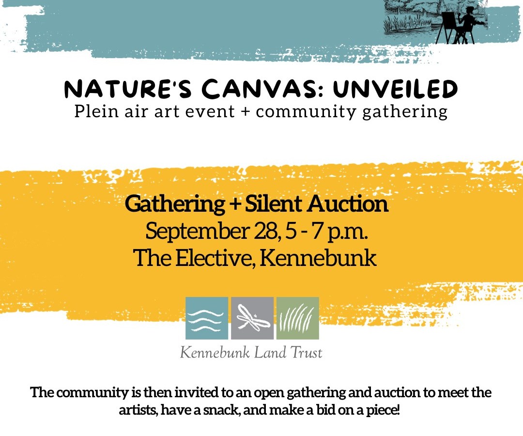 Kennebunk Land Trust’s event, Nature’s Canvas Unveiled: Plein Air Art Auction and Community Art Showcase, will host a public viewing and auction at The Elective in Kennebunk on Sept. 28 from 5 to 7 p.m. Over the weekend of Sept. 15-17, 15 local plein air artists painted at Kennebunk Land Trust preserves, bringing Maine’s colors […]