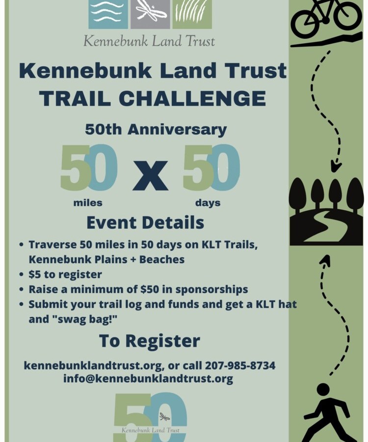 The Kennebunk Land Trust invites people to support the trust while getting out on the trails and registering for the 50 x 50 Trail Challenge. In recognition of the trusts’ 50th year, participants raise $50 in donations to travel (walk, bike, run, stroll, etc.) 50 miles in 50 days on Kennebunk Land Trust trails, Kennebunk […]
