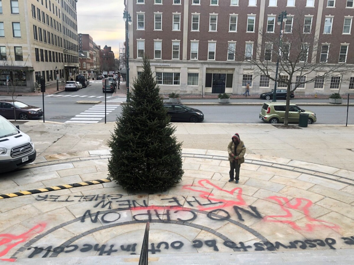 Controversy over Portland’s new shelter gets messy with vandalism at City Hall