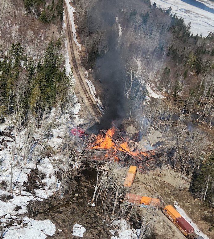 Derailed train in northern Maine was carrying flammable chemicals